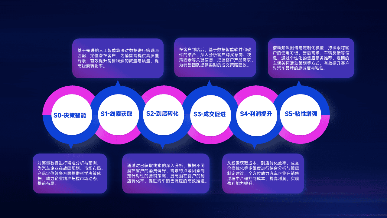 通过拓宽潜在客户来源、、优化线索分配并提高到店转化率,,,以增强销售效率。。同时,,,,利用线索数据不断优化分析模型,,,,有效提升转化率,,,扩大营销影响力。。。。